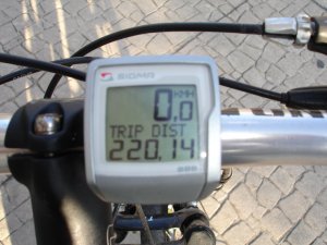 Rumo ao sul, pela marginal duriense e marítima de Gaia até Espinho, a primeira hora de pedalada foi cumprida a gosto. A partir daí, até à Figueira da Foz, pela N109, nada de especial se passou senão pedalar, pedalar e pedalar, enfrentar as rajadas de vento frontal, uma chuvada forte e fazer duas bem desejadas paragens técnicas. A primeira em Aveiro para a necessária alimentação, hidratação e micção. Depois de ultrapassada a barreira psicológica dos 100 quilómetros outra paragem em Mira, e desta vez para a aquisição de uma pomadinha milagrosa que ajudasse a aliviar a tendinite e as caimbras que afligiam um dos companheiros de “route”. Contrariamente à viagem do ano transacto, em que bem cedo senti muitas dores musculares, felizmente eu encontrava-me bem. Chegados à Figueira, já muito para além das 13 horas, paramos para confortar o estômago e deixar o corpo descansar naquela relva refrescante, mas não tardou muito para voltar a sentir o rabo espalmado no selim cada vez mais desconfortável. E de novo o vento, o asfalto e aquelas rectas intermináveis até Leiria. Agora e sempre que surgisse uma pequena subidita, era já ultrapassada a um ritmo bem mais pesaroso: “Mais cedo ou mais tarde havemos de chegar, ai havemos, havemos”.