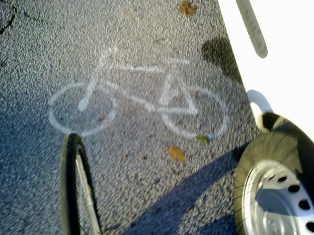 Seguia eu no meu communtinguezinho matinal quando tenho um dejávú. Avisto na minha direcção um pai que pedalava a sua bicla clássica, no passeio, trazendo a filha sentada no dropbar. Afoito, peguei no telemóvel e aponto-lhes a câmara tentado captar aquela cena familiar mas, de repente, um condutor apressado e que não estava pelos ajustes, buzinou-me aos ouvidos como que a reclamar: -Sai da frente ó pa…parazzi!. Instintivamente, temendo que não tivesse muito espaço de manobra para o meu lado, interrompi a focagem e encostei-me à direita para o tipo me ultrapassar. Mantive por momentos firme o aparelho na mão e sem querer, ironicamente saiu esse clique fotográfico que vêm lá em cima, como que a reivindicar o nosso espaço! E esta hein…