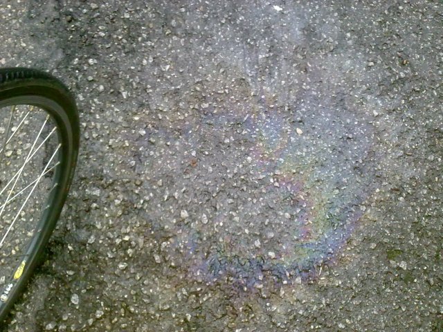 Depois de vários dias de seca, refiro-me evidentemente à falta de chuva, o que é invulgar para Janeiro mas porreiro para a malta das pedaladas, eis que S. Pedro timidamente resolveu abrir o chuveiro e presenteou os tripeiros com a tradicional morrinha. Assim, aqui e ali ao pedalar pelas vias urbanas, lá vamos descobrindo indícios da merda que os carros deixam no pavimento e que, nestas condições, podem ser armadilhas potencialmente perigosas para quem tem de se equilibrar em duas rodas. Não nos incomoda apanhar uma valente molha mas receios tenho, caso derrape numa destas manchas e depois venha a sentir no corpo a dura realidade, a força da gravidade.