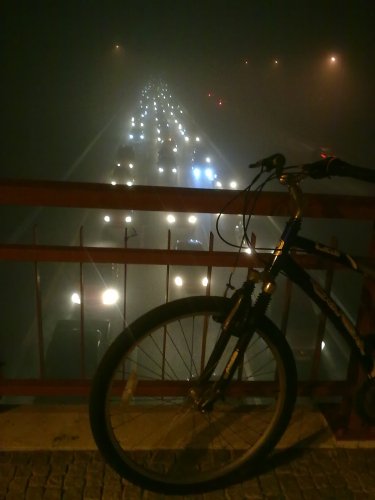Após ler o postal do nosso amigo César, lembrei-me da fotografia que tirei já altas horas na noite passada (mais precisamente às 23:30h), quando de volta a casa pedalava pela ciclovia do viaduto da Prelada sobre a Via de Cintura Interna.