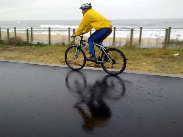 Quem nos observa fica com um olhar curioso, não tanto pelo que vestimos mas pela forma como abordamos o mau tempo numa bicicleta. Qualquer que seja o clima, nada significa uma mudança no nosso ritual de pedalar. Com roupas em camadas, confortáveis e quentes, fica-se com a sensação de ser uma salsicha, e uma vigorosa pedalada é suficiente para permear o corpo com um calor consolador.