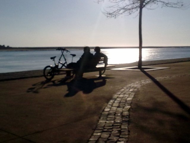 Na bicicleta. Aquilo que hoje é a minha realidade e um benefício extraordinário, eu só aprendi aos 6 anos, para deixar aos 18 e voltar a ela para me aventurar aos 40. Aos poucos fui conquistando a afeição das amigas do ambiente e o resto, bem, o resto é paisagem e absorver todo o prazer que as minhas bicicletas me têm proporcionado.
