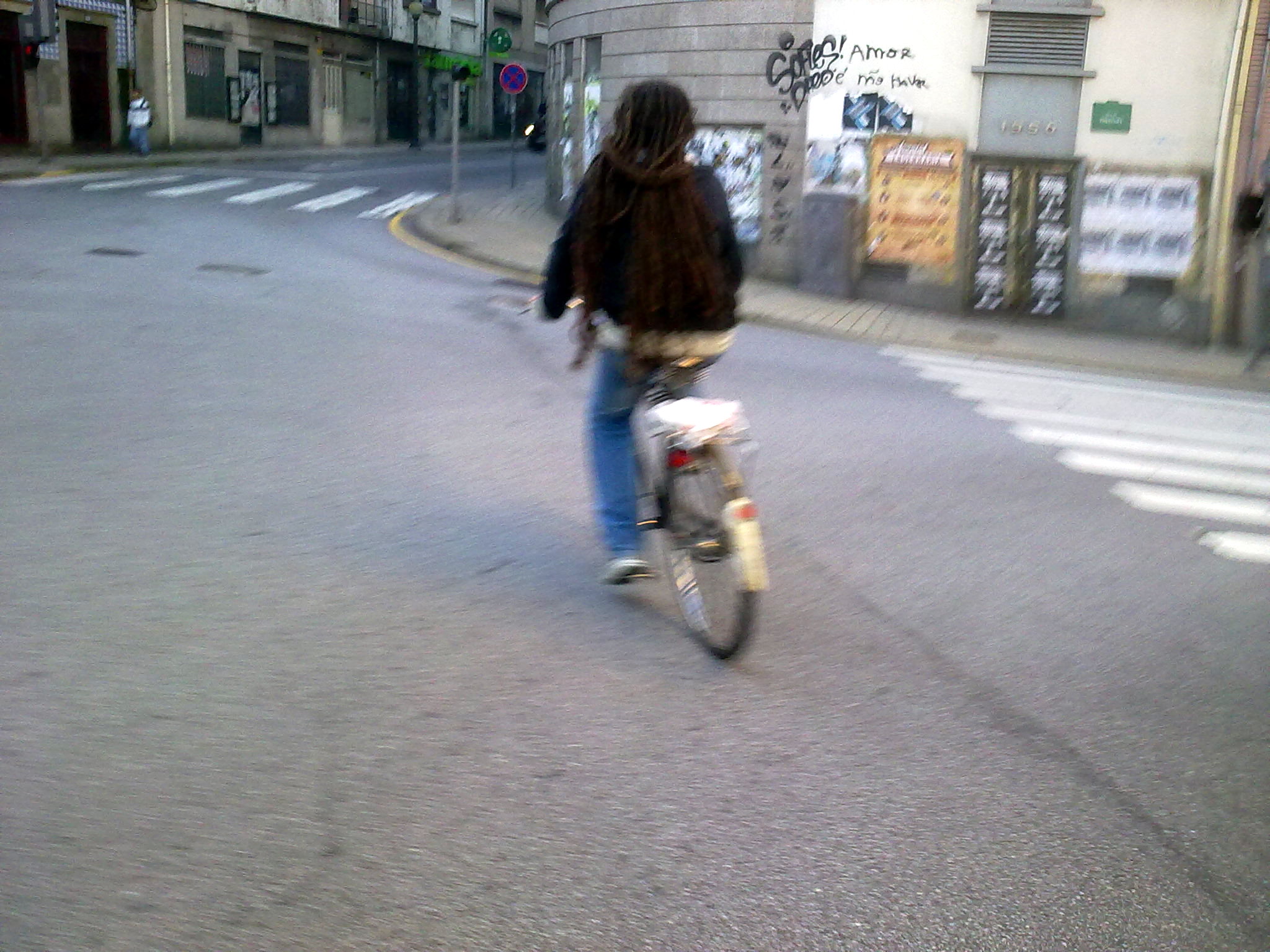 Pois esta manhã, ali o rastafari man da foto fez de tudo para lhes dar razão. Vi-o passar “à lagardere” o vermelho do cruzamento da Constituição e depois seguir pelo passeio da Oliveira Monteiro. Mais à frente, na descida para o Carolina, ultrapassei-o e segui o meu caminho pela rua Augusto Luso. Já no cruzamento com a Aníbal Cunha, junto à Igreja de Cedofeita, passa à minha frente vindo da esquerda, ou seja, o tipo desceu a parte final da Oliveira Monteiro, parte que é de sentido proibido, cruzou a Rua da Boavista e entrou na Aníbal Cunha, sempre em sentido contrário! Fez mais de 300m em contra-a-mão! No cruzamento da Torrinha passo por ele e tiro-lhe o boneco. Subo para a Maternidade, continuo pela rua Adolfo Casais Monteiro e entro na D. Manuel II virando à esquerda, sempre no sentido rodoviário. E é junto ao túnel que dou com o tipo na minha direcção! Quer dizer, para estar ali o gajo fez toda a rua do Rosário em contra-a-mão! Como, não sei, mas imagino o quanto poderá ter enfurecido meio mundo com esse tipo de comportamento!