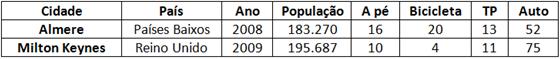 Tabela 1 – Repartição modal (%) de Almere e Milton Keynes. Fonte: http://www.epomm.eu/tems/index.phtml
