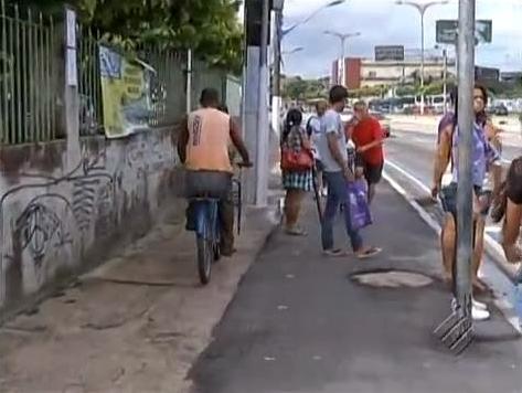 Figura 9 – Pedestres e ciclistas partilham a ciclocoisa pois há pouco espaço na rua…