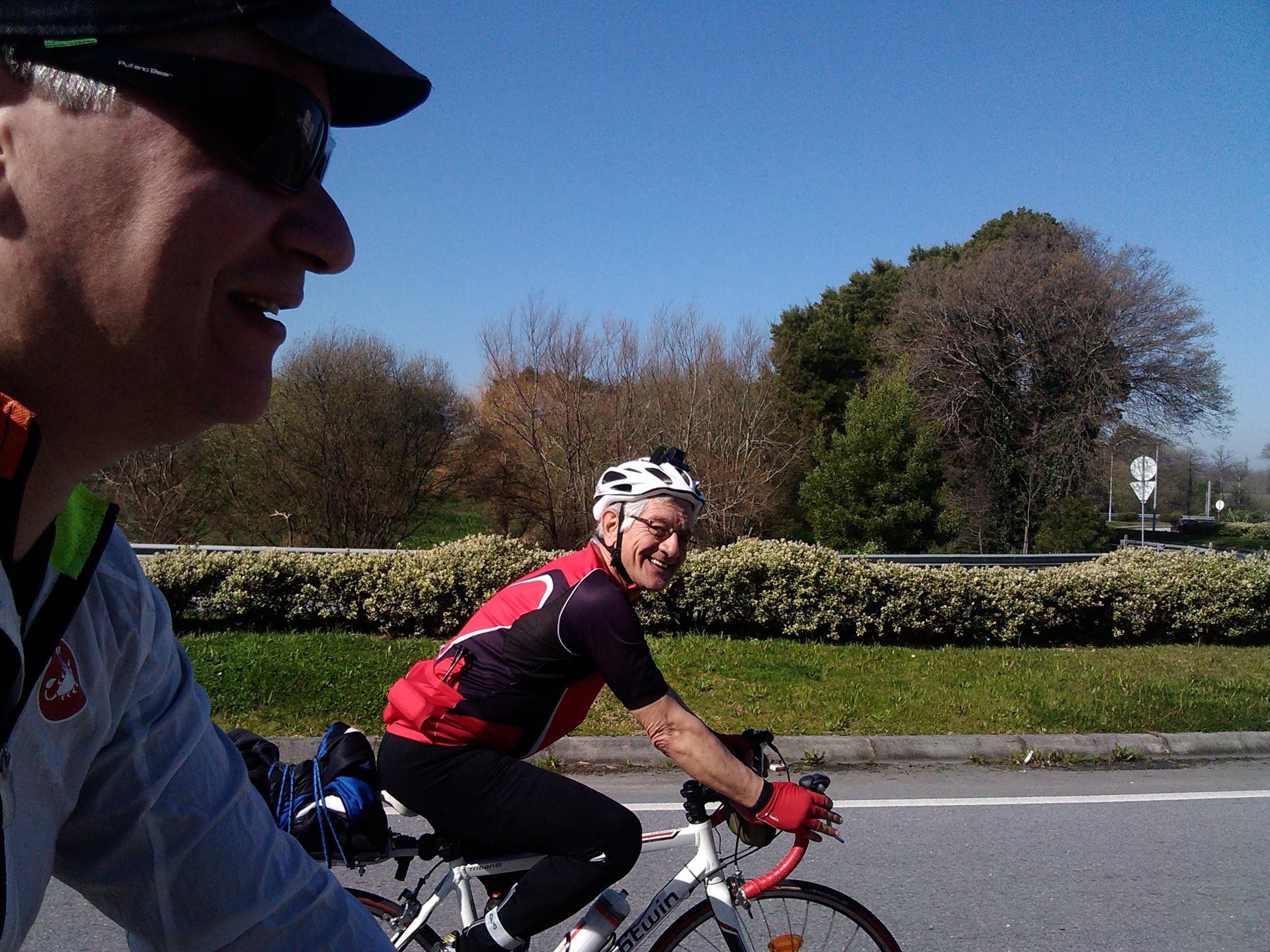No dia B, bê de Baiona, e de brevet à nossa moda, o esquema foi acordar cedo e sair sob um agradável céu azul ao encontro dos habituais companheiros de aventura, amizades renovadas a cada encontro, para pedalar, vadiar, conversar, pensar na morte da bezerra, esquecer os problemas, respirar novos ares e aproveitar da vida. O objectivo era chegar à bela, medieval e turística vila galega, dar uns olés às chicas e fazer meia volta. Não havia horas para nada, embora eu tivesse pretensões de chegar a casa no mesmo dia.