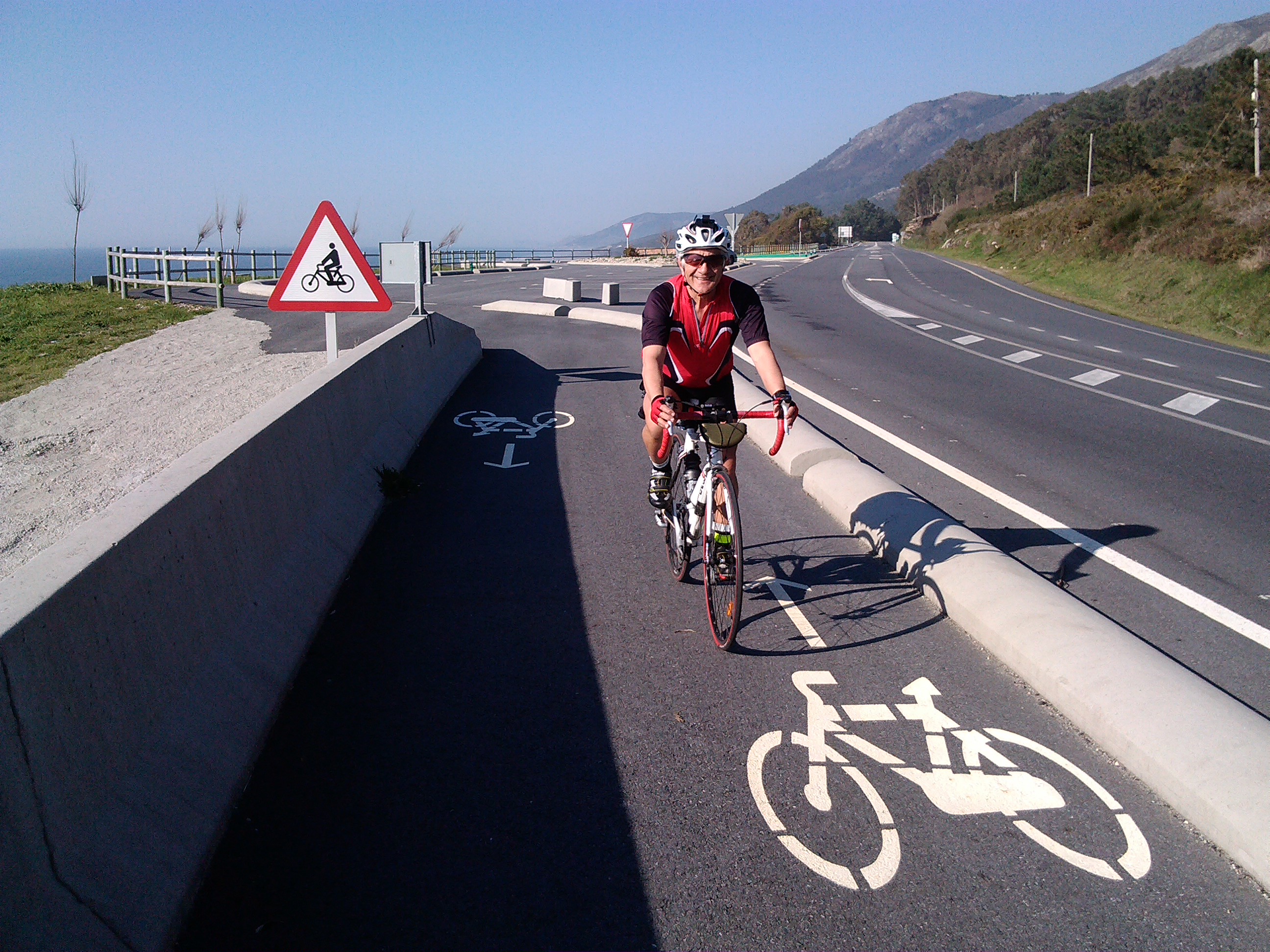 Os ritmos já eram diferentes. Ensaiamos pedalar juntos sem que um acabasse acelerando demais e comprometendo o desempenho do outro, mas, sinceramente, isso não deu lá muito resultado, e assim se aproveitou cada paragem para se admirar a paisagem. Pedalamos nos troços de ciclovia que a longa Avenida Brasil (PO552) oferece. “Voamos” como um bando de aves à beira-mar até avistarmos as ilhas Cíes. Um curto momento de relaxe para reposicionamento estratégico, algumas fotografias de ocasião e, só então, o mini pelotão fez a sua entrada triunfal em Baiona, mesmo a tempo do lanche.