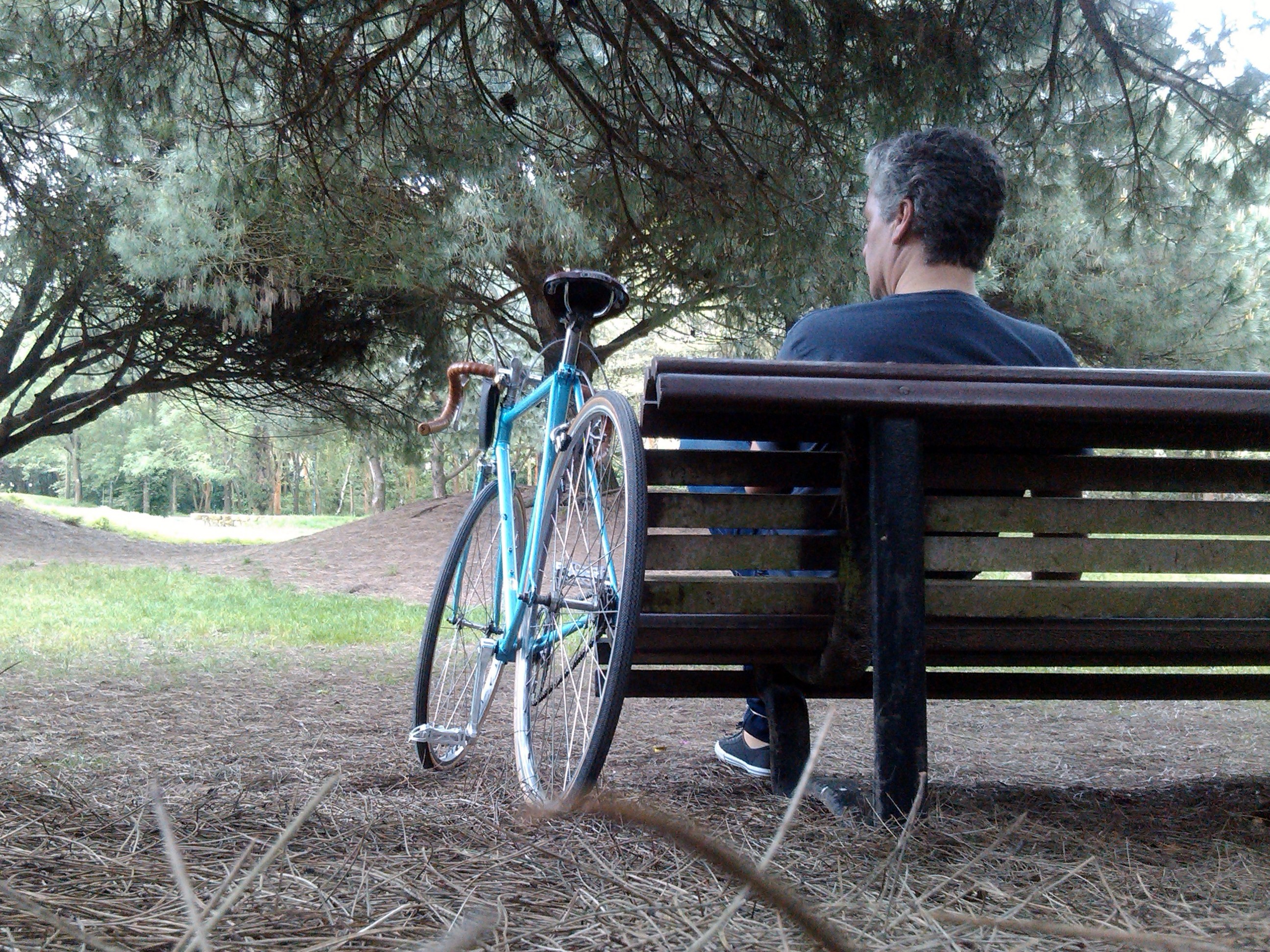 Taí, gostei da foto. Primeiro que tudo foi planejada apesar de sugerir ser ocasional, foi tirada por trás do ator, devidamene combinado com ele, com postura estudada, planejada. Daria uma história descrever esta foto. Mas, deixando de lado o facto de que é um filme, estático, sem dúvida, mas é um filme, o panrorama foi escolhido adrede. A bicicleta ao la, como uma fiel companheira, silenciosa, quieta, mas pronta para levar o senhor e amo para onde queira, basta sentar e pedalar, lentamente mas firmemente para impor a caminhada. A frente, como num túnel, a visão de um longo caminho que o ator confia, talvez cansado, mas seguro de que o irá enfrentar passado alguns instantes quando recuperar as forças. Ainda assim, pensativo, considera que há duas possibilidades pela frente, numa delas, lembra-se o ator, dias atrás encontrou bela morena no momento em que ela entrava em casa e ante o casual encontro houve uma troca de olhares de que sente saudades. Haveria novamente o encontro se escolhesse esta via? Pedalar oferece momentos como este, impossível viver isto estando atrás do volante dum carro. Poristo eu sou ciclista, não fossem outras razões mais fortes mas nenhuma delas mais deliciosa.