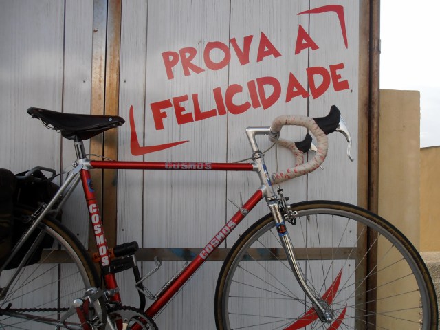 Na bicicleta. Aquilo que hoje é a minha realidade e um benefício extraordinário, eu só aprendi aos 6 anos, para deixar aos 18 e voltar a ela para me aventurar aos 40. Aos poucos fui conquistando a afeição das amigas do ambiente e o resto, bem, o resto é paisagem e absorver todo o prazer que as minhas bicicletas me têm proporcionado.