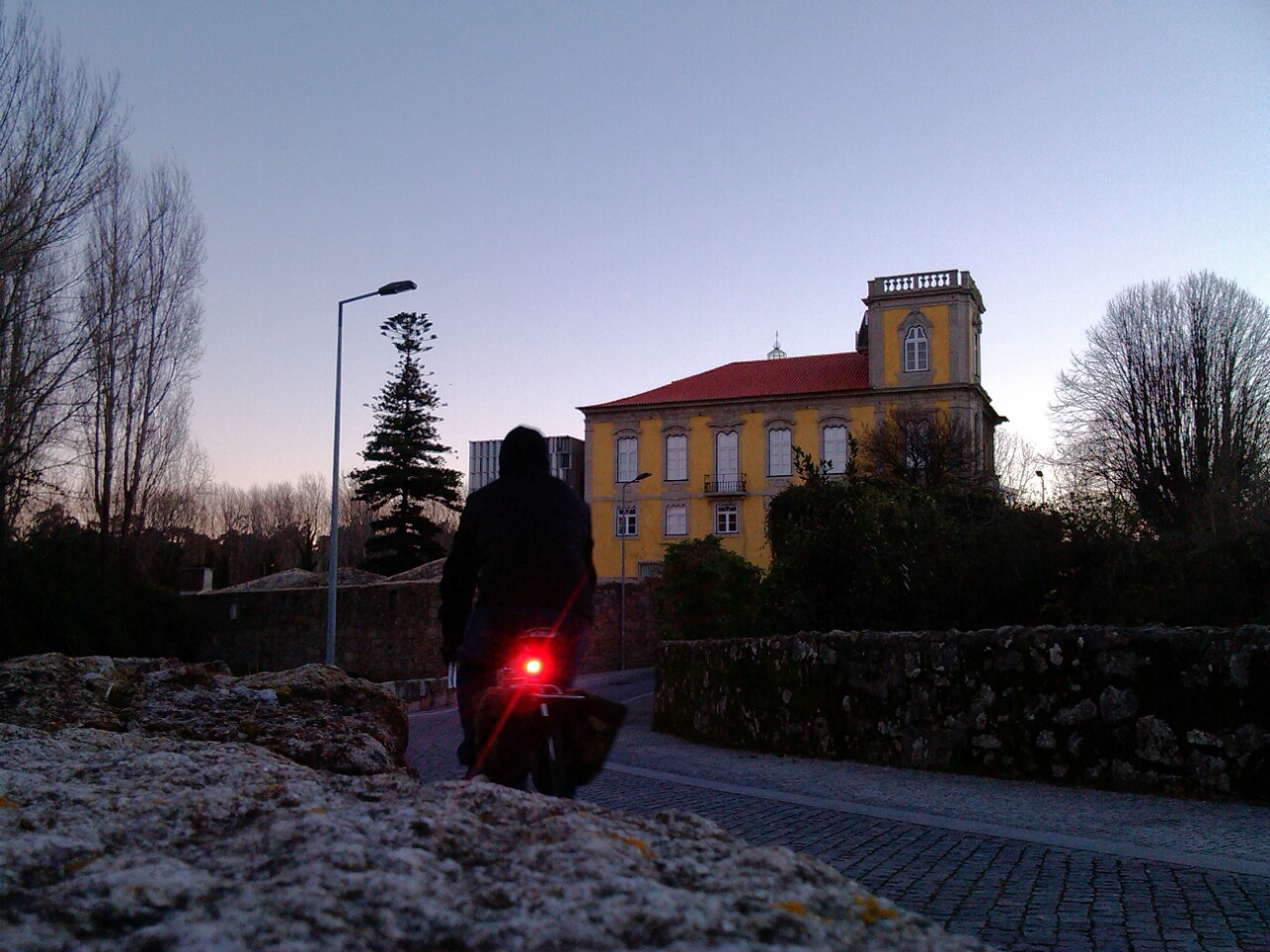 Na bicicleta o frio não se estranha, entranha-se. Afinal estamos no Inverno, o que não é de estranhar portanto que mesmo cheio de roupa mal coloque o nariz fora da porta sinta um arrepio na espinha. O dia desponta bonito, mas não eram aqueles imberbes raios de sol reluzindo no aço da bicicleta que me fariam aquecer. Ao pedalar bem cedo, para o trabalho ou outro sítio qualquer, estamos livres e ao mesmo tempo expostos aos elementos matinais. De luvas grossas e gorro a tapar as orelhas, mais que preparado para enfrentar aquele briol, dou as primeiras pedaladas do dia. O ar gelado morde-me a pele, penetra nas narinas e arrefece os pulmões. Rajadas de vento d’Este esbofeteiam-me o rosto e acordam-me de vez. Automaticamente levanto o rabo do selim, activo as pernas para dar ritmo aos pedais. Escalo o topo da montanha, neste caso o viaduto sobre a VCI. Encolho-me no cachecol e prossigo, fungando. Lentamente a energia da pedalada reconforta, o movimento pedaleiro revigora e equilibra-me os níveis do humor. Ao arredondar a primeira curva já sinto a diferença com o corpo a aquecer, mas que está um frio do carago, lá isso estava!