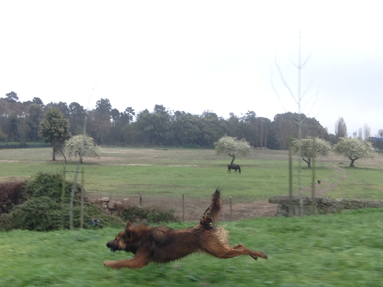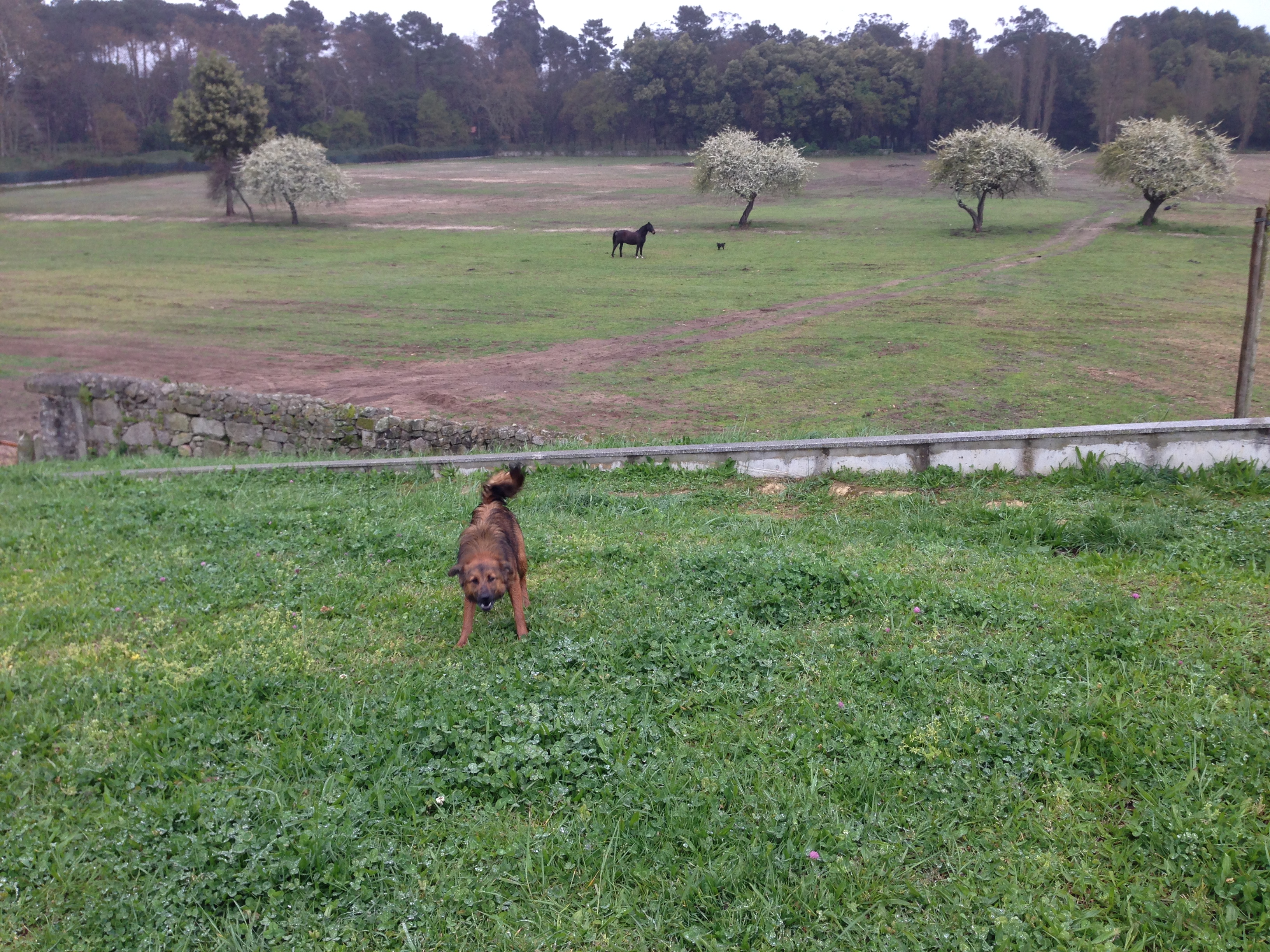 Ontem à tarde, bem pertinho de minha casa, dou de caras com o audaz e eriçado rafeiro. Numa correria desenfreada, o jeco aparece do nada, direito a mim a ladrar como que a convidar-me para uma corridinha. Parei, ele também parou, e então dei-lhe trela ao desafio. Apenas lhe pedi para esperar um pouquinho, para preparar a minha teleobjectiva telefónica. Lado a lado, eu na ciclovia e ele no relvado, fizemos um pequeno jogo entre o cão e o gato, que resultou num grande divertimento e nas fotos para hoje vos mostrar. O que eles querem é simplesmente brincar.