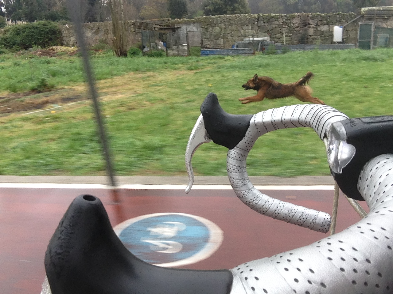 Por alguma razão há cães que não se dão lá muito bem com bicicletas e têm vocação para perseguir afoitos ciclistas. Talvez seja apenas para sacudir as pulgas, querem dar ao dente num rechonchudo tornozelo, ou porque se sentem intimidados pelo ciclista, o facto é que por vezes cães e bicicletas não combinam. Posso dizer até já possuir alguma experiência na temática como escapar aos pulguentos, mas até ver ainda só atropelei um! (edit: dois!)