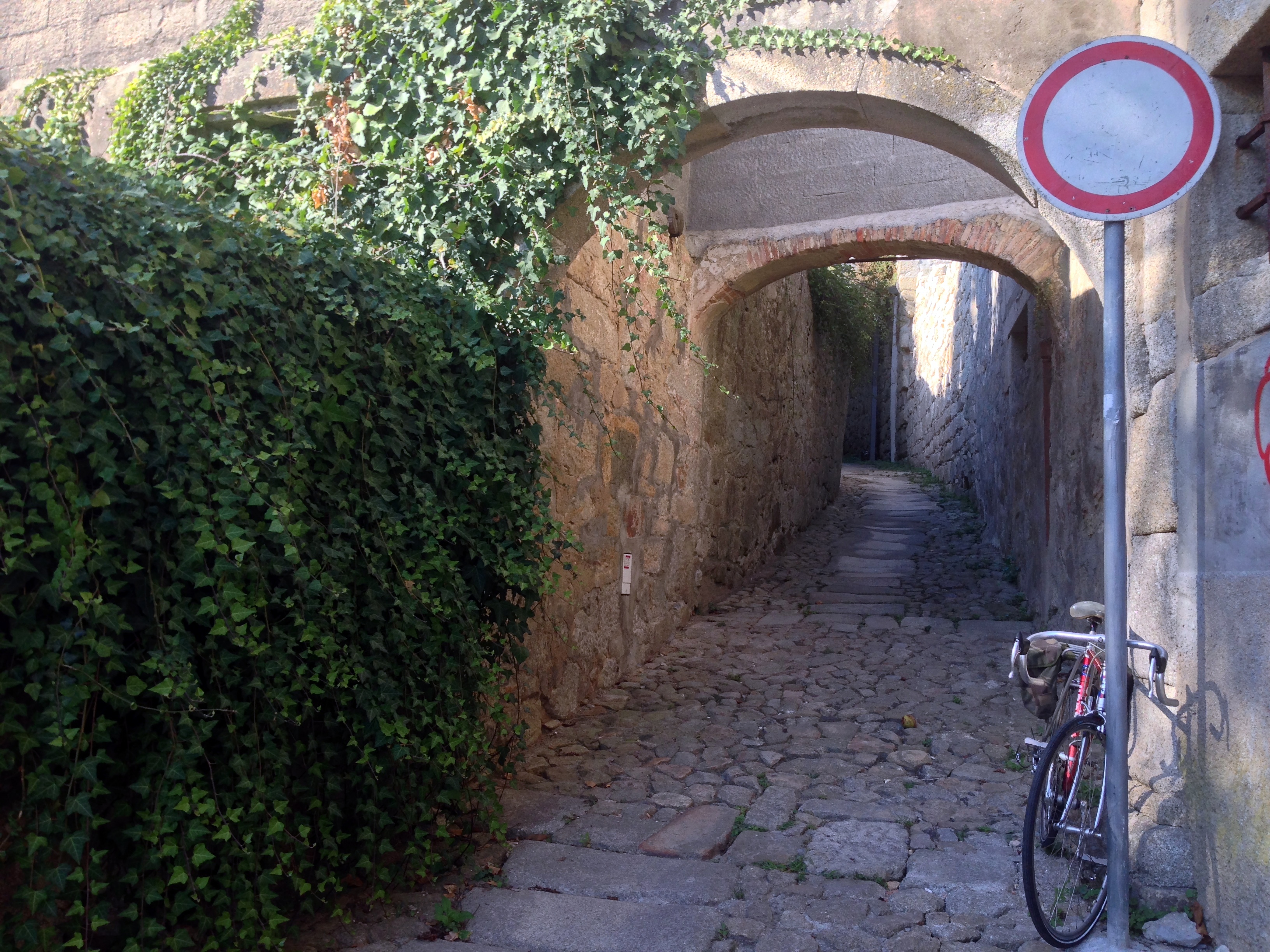 Encerrado o expediente, aproveitei para dar um saltinho à veloloja do Palácio e cumprimentar os duendes. Mas como a tarde estava convidativa e eu carente de um arejo, vai daí, decidi logo ali alegrar o meu regresso a casa e embrenhar-me pela Rua de Entre-Quintas. Fui, por assim dizer, espairecer numa ilha de tranquilidade no meio do Porto, no coração de uma cidade repleta de contrastes e recantos que a tornam numa urbe tão especial. Na estreita via entalada entre os muros da Quinta da Macieirinha e da casa Tait, ou Quinta do Meio, começa um dos percursos dos Caminhos do Romântico, cenário perfeito para desopilar um pouco, e também para testar a resistência aos travões da Cósmica depois de um lifting forçado ao guiador.