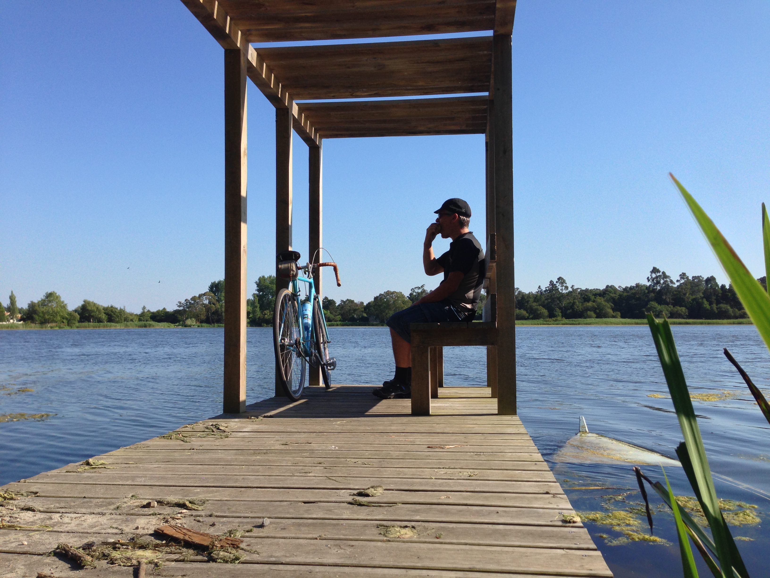 Noca Ramos é um conhecido designer de bicicletas e tem motivado meio mundo ciclista a dar ao pedal até um pequeno paraíso aquático, a Lagoa de Mira. O repto é tirar um retrato com a companheira de viagem, enquadrados numa esplêndida vista, em pose na varanda de madeira sob as águas tranquilas da lagoa, para mais tarde ser partilhado no seu álbum “the Magic Bench”.