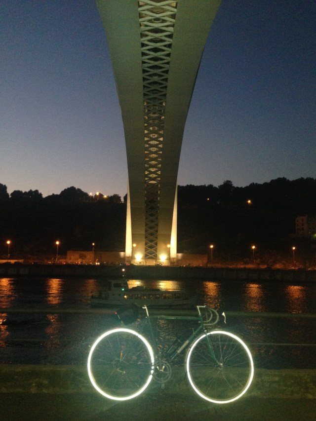 Sobretudo nestas aprazíveis noites de verão, sabe bem sair de bicicleta para ir tomar café com os amigos, numas pedalas mais demoradas, simplesmente para sentir a brisa fresca na cara. À noite nem todos os ciclistas são parvos, como tal precisamos de redobrar cuidados quanto à nossa visibilidade. Para se circular de bicicleta à noite, a lei obriga a equipar a bicicleta com uma luz de presença à frente e outra à retaguarda, bem como ter um par de reflectores em ambas as rodas! Pois bem, plásticos brilhantes e coloridos presos aos raios é coisa que também não gosto. Os pneus com a faixa reflectora lateral são os mais adequados para que sejamos vistos pelos automobilistas no meio da escuridão. Para andar na cidade, viajar e treinar de noite, existem variadíssimas opções para todos os gostos e bolsos, pneus muito duráveis, resistentes a furos e capazes de nos estragarem a bela da fotografia!