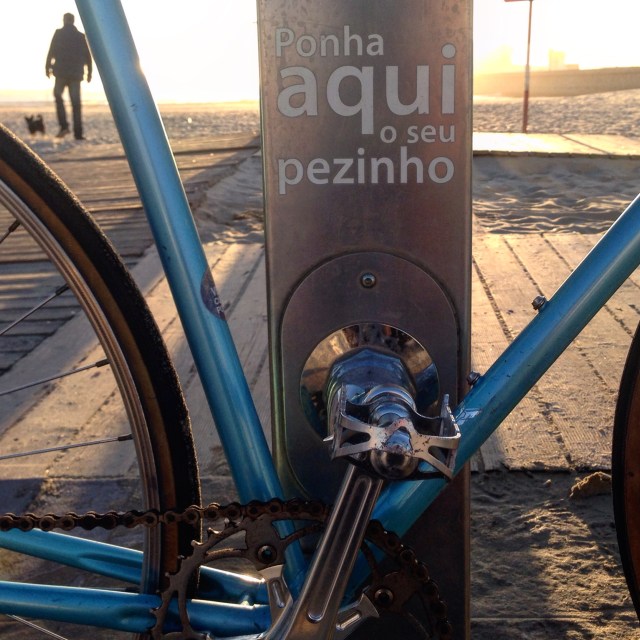 Na bicicleta. Aquilo que hoje é a minha realidade e um benefício extraordinário, eu só aprendi aos 6 anos, para deixar aos 18 e voltar a ela para me aventurar aos 40. Aos poucos fui conquistando a afeição das amigas do ambiente e o resto, bem, o resto é paisagem e absorver todo o prazer que as minhas bicicletas me têm proporcionado.