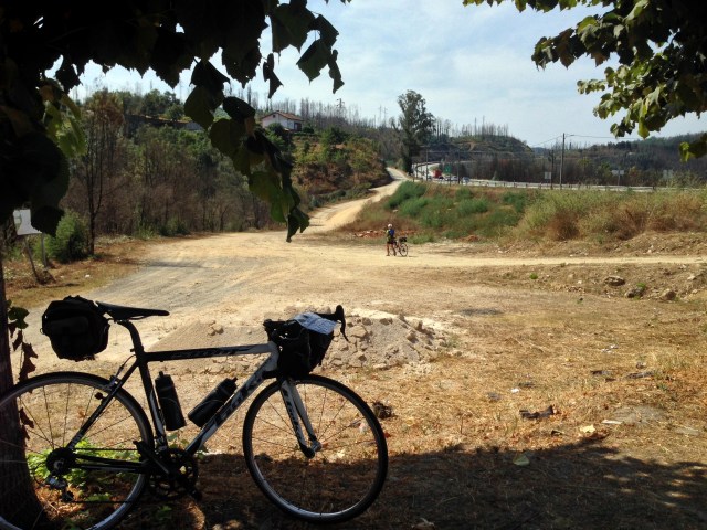 É neste troço da N2 que encontro quatro bidons de água, novos e com resquícios frescos do líquido precioso. Ao que tudo indica foram atirados para a valeta por profissionais do ciclismo que participaram na recente prova Grande Prémio em Ciclismo da EN2! Para mim o ciclismo não deveria ter qualquer impacto na natureza, não só porque não há emissão de dióxido de carbono mas porque um dos propósitos dos ciclistas amadores é proteger e sensibilizar a preservação da natureza, não deitando lixo fora. Fruto da competição, os ciclistas em prova têm esse mau hábito de ir deitando lixo para a estrada, restos das embalagens e bidons de plástico. Sabemos que alguns desses bidons são depois recolhidos como lembranças por espectadores de ocasião, mas nem todos são encontrados e ficam por ali esquecidos em alguns pontos da estrada. Recolhi-os, amarrei-os à malinha Carradice e continuei até Pedrógão Grande.