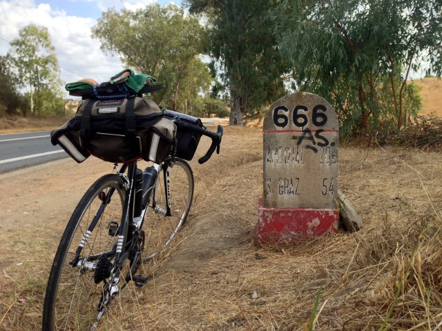 Vejo o marco do quilómetro 666, o bestial número apocalíptico da besta. Paro, espero que um jovem casal termine as suas selfies, e faço o registo diabólico.