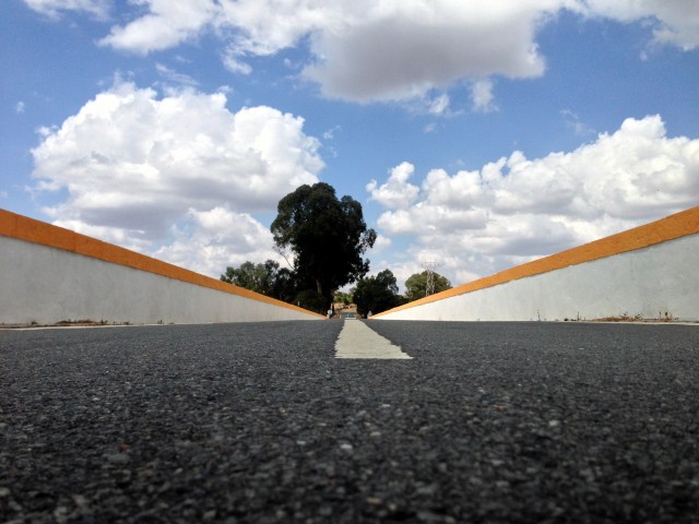 O panorama alentejano luzente, os planaltos dourados a aparecer de frente, a mesura sombreada dos pinheiros e sobreiros, a estrada estica e endireita. Acontece que a estrada porfia, é contagiante demais, e num tirinho chego ao Ciborro. Detenho-me defronte ao mítico marco quilomético 500, colocado em plano de destaque no topo de um muro. Do outro lado, no café de Ermelinda Miguel, o café “oficial” da N2, dizem, um grupo de motards ocupa toda a esplanada. Com a divulgação dos últimos anos percebe-se que a antiga nacional se tornou num pólo atractivo por estas bandas, e agora muitos turistas e aventureiros param aqui vindos em motos, vespas, carros clássicos e até bicicletas a pedal, imagine-se!