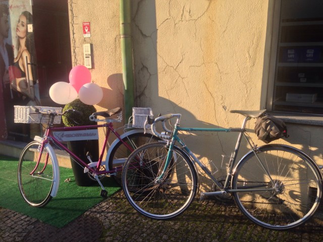 Na bicicleta. Aquilo que hoje é a minha realidade e um benefício extraordinário, eu só aprendi aos 6 anos, para deixar aos 18 e voltar a ela para me aventurar aos 40. Aos poucos fui conquistando a afeição das amigas do ambiente e o resto, bem, o resto é paisagem e absorver todo o prazer que as minhas bicicletas me têm proporcionado.