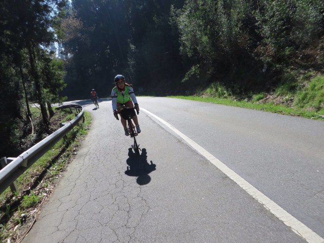 Sempre que a estrada empinava sou atingido pelo calor do ar, o que tornava incomodo o excesso de roupa a cobrir o corpinho. Depois de um pequeno topo, foi a meio de uma curva que resolvi parar, para, ali mesmo, fazer um strip ao vivo.