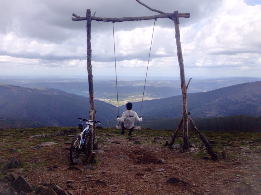 Nem sempre encontramos o que procuramos, mas podemos pensar em alternativas. De bicicleta, o cume de uma serra tem sempre o lado suado da conquista e o prémio arrebatado é uma paisagem esmagadora. Na verdade fiquei satisfeito só por estar ali. Foi como se levasse o baloiço comigo. Foi como se baloiçasse em simultâneo com a estrada, com o vento, com algum parceiro de circunstância, para a frente e para trás, de um lado para o outro, porque de bicicleta a viagem nunca é em vão.