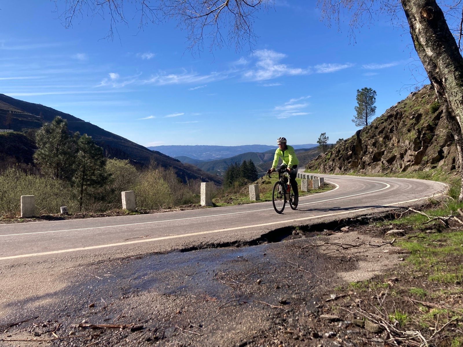 A estrada que percorre o Parque é lindíssima e, de ambos os lados, a paisagem autóctone ressurge, fazendo as delícias destes vossos cicloturistas, em recuperação muscular pós escalada. A serra, rica em granito, é um depósito natural de água, onde se vê, ou se escuta por todo o lado, pequenos riachos a escorrer dos penedos para as levadas.