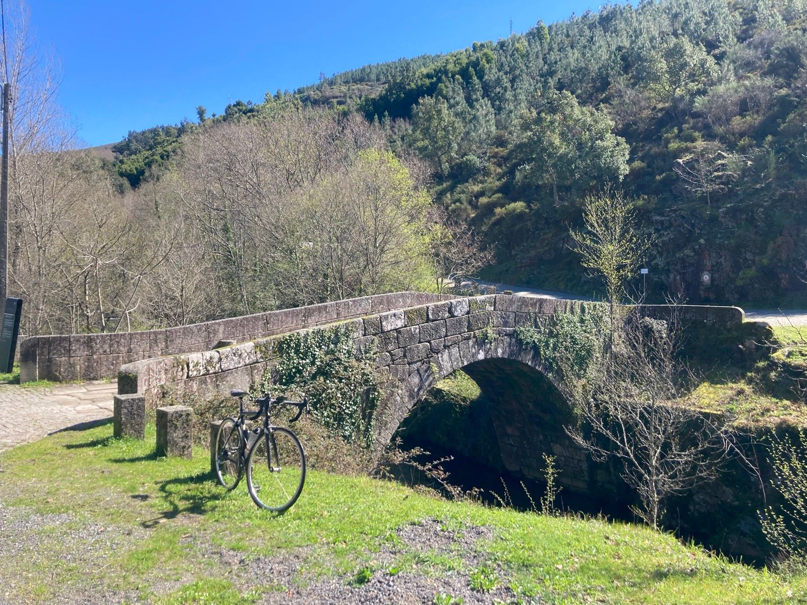 Depois de uma pausa mais demorada, respondendo à recomendação do Jorge, retomamos a descida para lá ao fundo cruzar o rio Olo pela Ponte Medieval de Ermelo. Mais à frente reencontramos a magnífica estrada N304, uma das mais belas deste país, e seguimos a bom ritmo para Mondim de Basto, onde ao meio-dia nos detivemos para almoçar.
