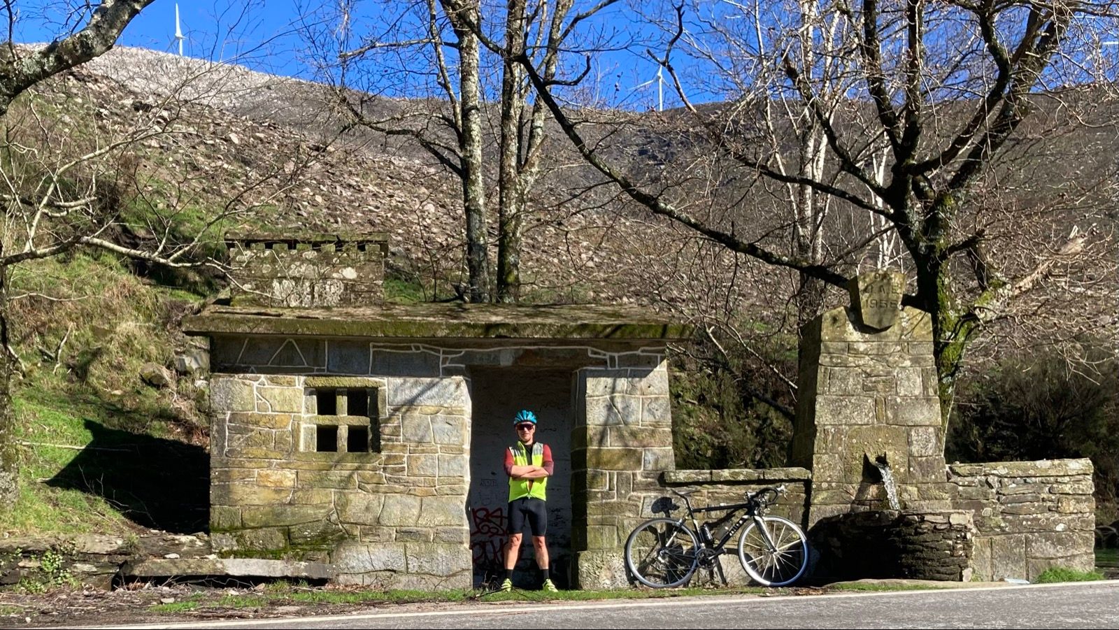 No único fontanário visível à berma da estrada, que fica mesmo antes da parte mais dura da subida, parei para beber, atestei a bilha, aproveitei também para verter águas, alimentar-me, perceber o pouco tráfego por lá existente, vários grupos de motards em excursão na sua maioria, e aguardar a chegada do Jorge.