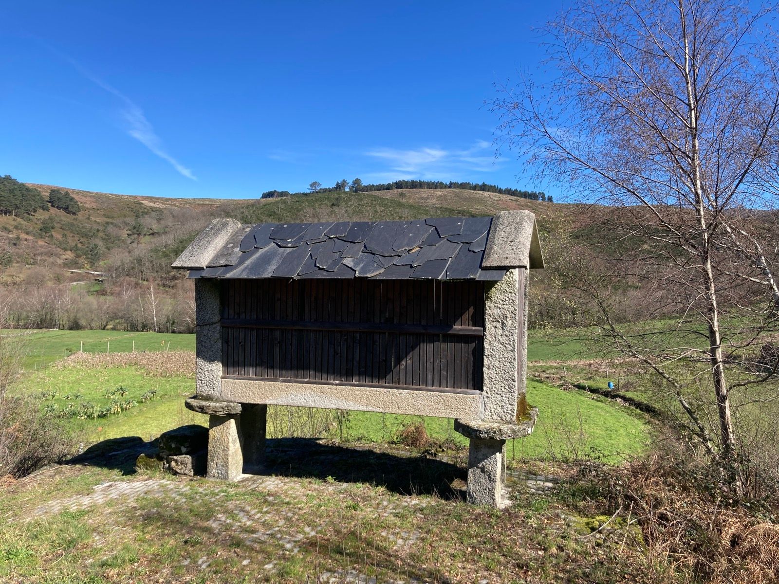 Sabendo que só seria possível contemplar as Fisgas na parte complementar da nossa excursão, vagarosamente fomos descendo pela degradada estrada que atravessa prados naturais e campos de cultivo alimentados pelo rio Olo, descobrindo aspetos interessantes como é a vida rural das pequenas aldeias. Ao longo da descida fomos encontrando espécies de fona e fauna típicas da região, como rebanhos, burros e gado bovino que coabitam nos pastos.