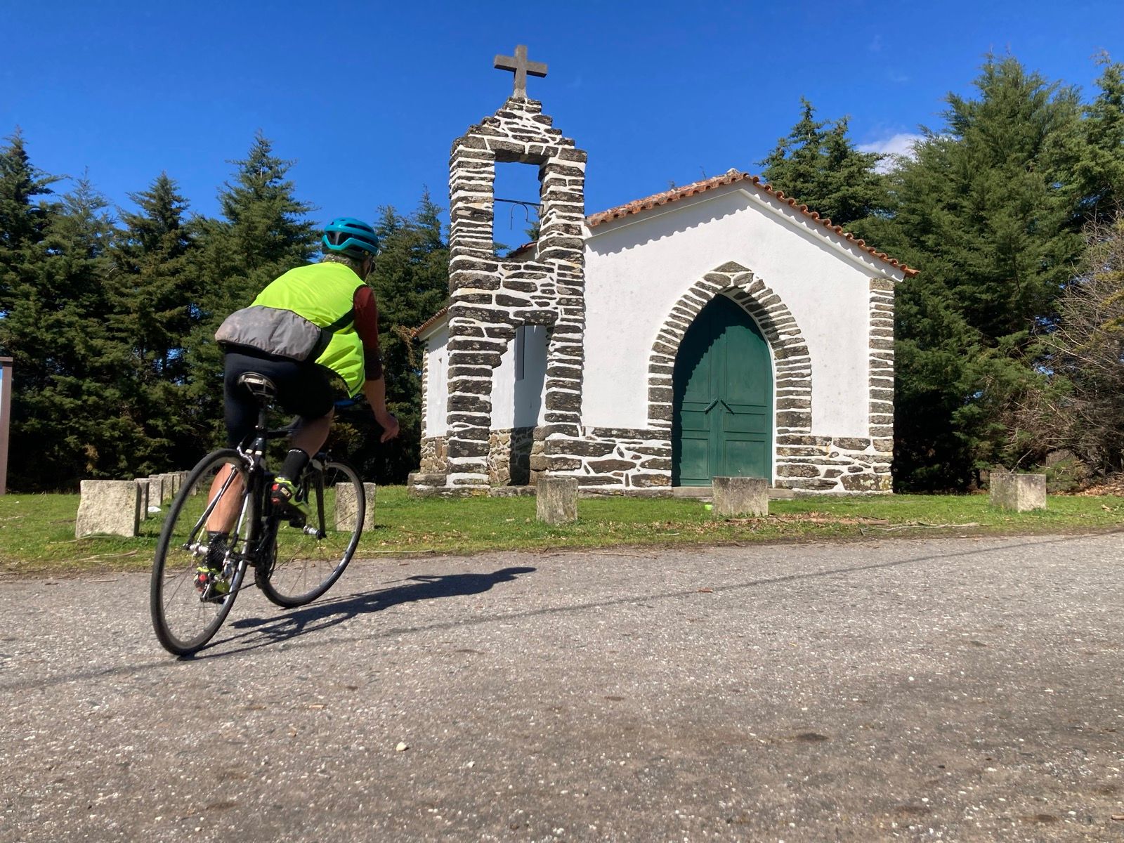 Do nada surge uma parede de 600 metros que, sem respeito por estes dois que já tinham 70km e mais de 2000 acumulados nas pernas, se apresentam com uns simpáticos 15% de média. A coisa inicia de forma suave e depois só piora. Rapidamente, ultrapassa os 20%. Aí foi preciso morder a língua e, literalmente, proibir-me de pôr o pé no chão, tão perto que estava do cruzamento. O que nos valeu foi serem poucos metros até à Capela da Senhora do Fojo, onde paramos para recuperar o folego e o ritmo cardíaco.