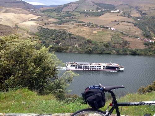 Meeting point às 6 da matina. Sob um manto de nuvens suspeitas, quatro animosos amigalhaços encontram-se, tiram a selfie da praxe e dão ao pedal ao longo da margem esquerda do Douro. São Pedro não se fez rogado e à passagem da comitiva pela sua devota Afurada abençoou os convivas com uma valente molha. Refugiados sob o alpendre da esquadra local, ficam a fazer companhia ao polícia de plantão e só meia hora depois retomam difinitivamente a pedalada.