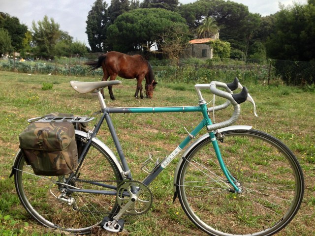 Iniciamos com cuidado a descida por uma estrada em muito mau estado, o que viria a ter as suas consequências na bicicleta da Lenita. Reparado o furo lá continuamos até ao cruzamento onde no ano passado errei o percurso. Desta vez não segui o instinto mas a roda dos companheiros. A pedalada seguiu tranquila, apenas aqui e ali assombrada pelas buzinadelas de alguns automobilistas nervosos e no mínimo ignorantes. Só para os lembrar: desde Janeiro de 2014 que o Código de Estrada, art.90, prevê que os “ciclistas podem circular a par na via, tal não cause perigo ou embaraço ao trânsito”… OK!