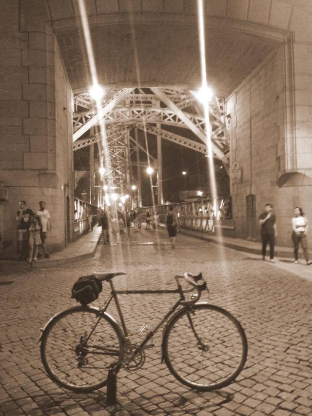 Chegamos a Anais com o depósito a entrar na reserva e, seguindo a dica de um randonneur experiente e conhecedor das melhores pastelarias da zona, desviamo-nos um bocadinho do percurso para tratar de adocicar o sangue. E é aqui que sem querer começou o meu épico descuido do dia, e do qual só iria dar conta no terceiro posto de controlo, na Vila de Punhe, passados vinte quilómetros e já de luzes ligadas. “Mas, cum carago! Perdi o diacho do cartão brevet!”. O bolso lateral e a tampa da malinha Carradice estavam abertos e nada do cartão para o voltar a carimbar! Quer dizer, fiz todo aquele percurso de mala aberta, o raio da cartolina evaporou-se! Resignado, voltei ao selim para cumprir a derradeira etapa, de volta a Marinhas, ao ponto de partida. Dei conta da minha chegada e da minha grave falha. Sem apresentar o cartão não poderei ter o brevet homologado. Paciência.